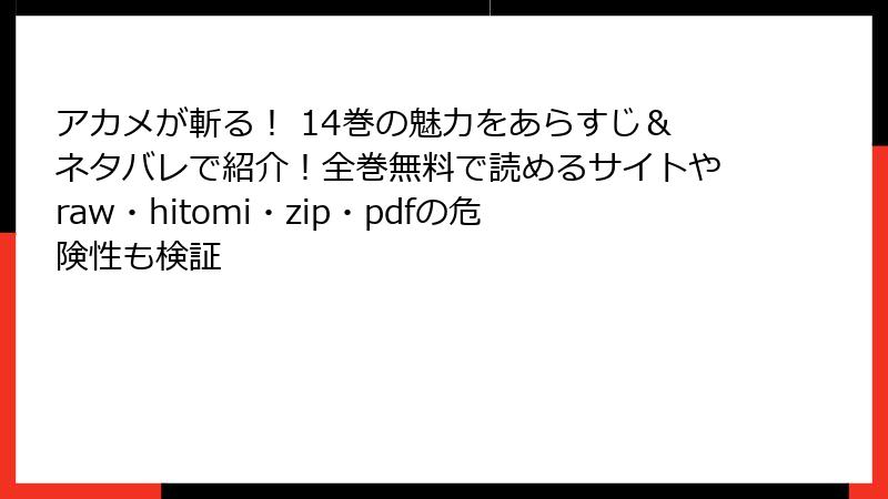 『アカメが斬る!』14巻 完全ネタバレ全開:誰が死に、誰が生き残ったのか?最終決戦の全貌を徹底解剖