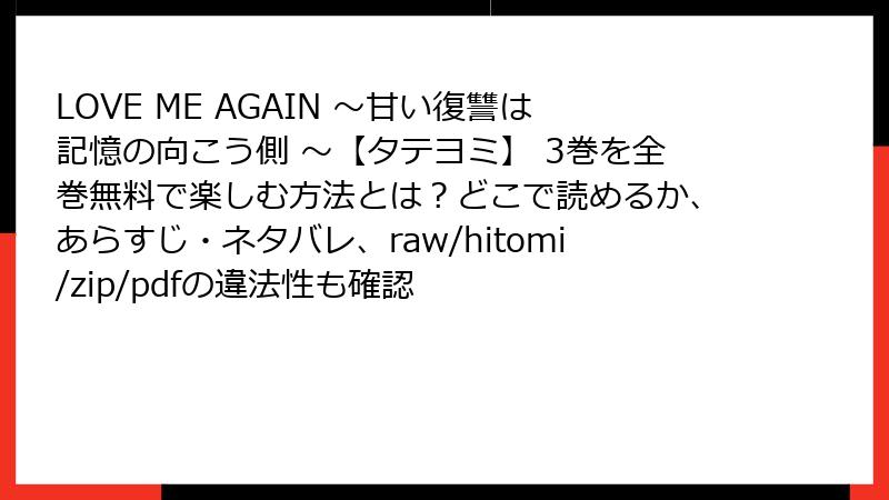 - 【警告】「LOVE ME AGAIN ~甘い復讐は記憶の向こう側~」をraw/hitomi/zip/pdf/漫画バンクで読むと…あなたのスマホが“復讐”される