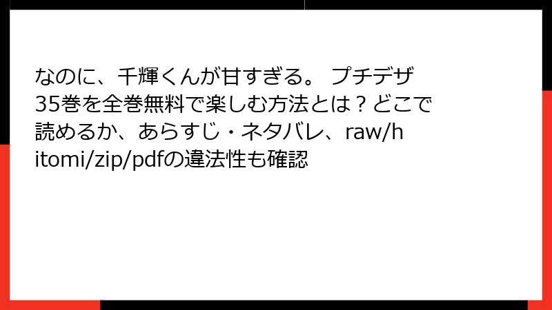 こんにちは、電子書籍ハンターのあやかです! 甘々ラブストーリーの金字塔『なのに、千輝くんが甘すぎる。』のプチデザ版、35巻まで出揃いましたね。千輝くんの塩対応からの甘え攻撃に、心臓持たない読者続出中! でも、紙版じゃなく電子でサクッと読みたい派の方、多いはず。今回は、指定の人気サービス(コミックシーモア、ブックライブ、めちゃコミック、ピッコマ、LINEマンガ、まんが王国、ebookjapan、Renta!)を中心に、どこで配信されているか、無料試し読みの範囲、クーポン活用術まで、2025年11月1日時点の最新情報を徹底調査。表で一目瞭然にまとめました。全巻無料は無理ですが、お得にイッキ読みできる方法満載ですよ。ネタバレなしで、純粋に「読みたい!」をサポートします♪