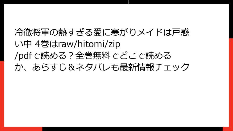 こんにちは、電子書籍ハンターの恋読み子です! TL漫画の傑作『冷徹将軍の熱すぎる愛に寒がりメイドは戸惑い中』(こいなだ陽日原作、板東いるか作画)の電子書籍版が、どのサービスで読めるか気になりませんか? 寒がりメイド・フィーナと冷徹将軍・シルヴェリオの熱いラブストーリーを、スマホやタブレットでいつでも楽しみたいですよね。2025年11月2日現在の配信状況を、指定された人気サービスを中心に徹底調査しました。全15巻(最新15巻発売済み)の取り扱いをチェックし、無料試し読みの有無やお得ポイントも詳しく解説。ネタバレなしで、読書計画を立てるのにぴったりです! それでは、巻数比較表からスタートしましょう。