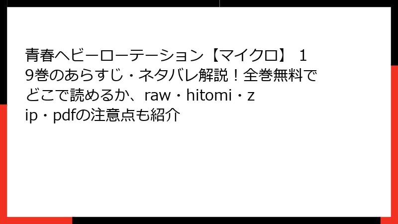 raw/hitomi/zip/pdf/漫画バンクなどの海賊版サイトは、法的罰金・逮捕、ウイルス感染、業界衰退という多大なリスクを伴います。事例からわかるように、被害は個人を超え、社会全体に波及。無料の誘惑に負けず、正規で楽しめば、作者の笑顔と高品質ストーリーが待っています。『青春ヘビーローテーション【マイクロ】』のドキドキを、安心して味わいましょう! 皆さんの体験談やおすすめ正規サービスをコメントでシェアしてくださいね♪