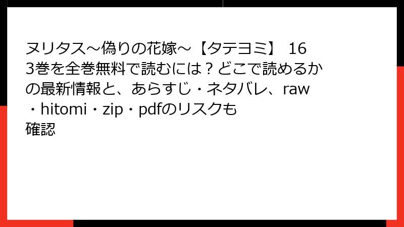 こんにちは、漫画好きの安全読書ブロガーです! 大好きな『ヌリタス~偽りの花嫁~』のような魅力的な作品を、無料で今すぐ読みたい一心でraw、hitomi、zip、pdf、漫画バンクなどの海賊版サイトに手を出したことはありませんか? 一見、最新巻が即アクセスできる便利さに惹かれますが、2025年現在、これらのサイトは法的・セキュリティの地雷原。利用者の被害報告が急増中で、軽い気持ちで訪れると取り返しのつかない事態に陥る可能性大です。この記事では、そんな海賊版サイトのリスクを多角的に深掘り。ブログ形式で読みやすくまとめました。結論から言うと、絶対に避け、正規ルートで楽しむのが賢明。作者の努力を尊重し、安全にハマりましょう! 注意:この記事は情報提供を目的としており、違法行為を推奨するものではありません。