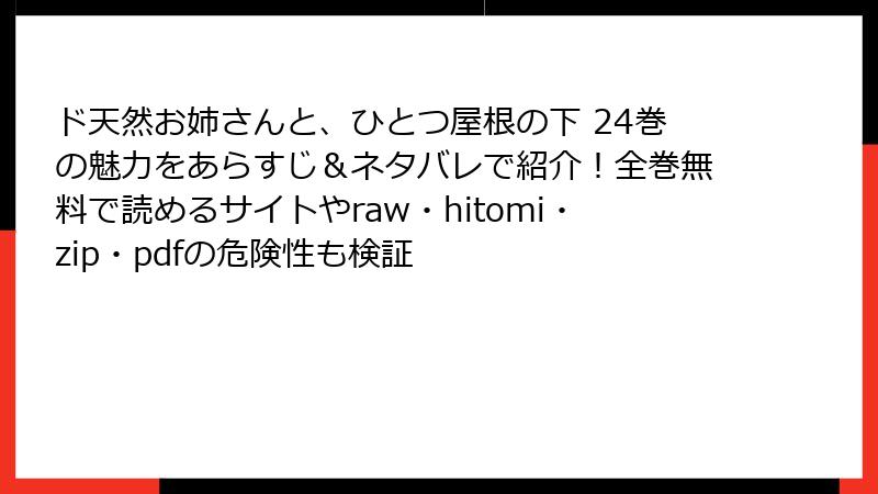 - 『ド天然お姉さんと、ひとつ屋根の下』を海賊版サイトで読むリスク:知っておくべき危険性