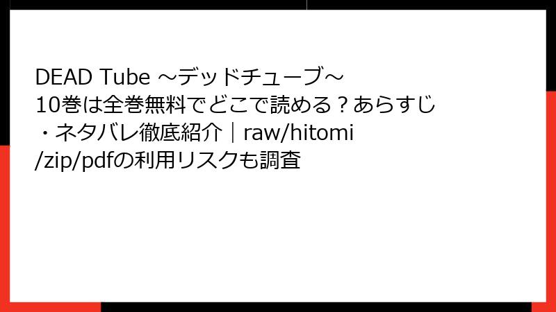 あなたは『DEAD Tube』10巻をどう感じましたか? 好きなキャラクターやシーン、または賛否のポイントをコメントでぜひ教えてください! このシリーズの過激な世界に飛び込む覚悟があるなら、10巻は間違いなく見逃せません。次回のレビューもお楽しみに!