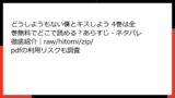 | マルウェア感染 | zipやpdfファイルをダウンロードすると、ランサムウェアが仕込まれ、PCの全ファイルを暗号化。身代金要求が来る。 | 画面がロックされ、漫画どころか仕事データが全滅。復旧費用数十万円。 |