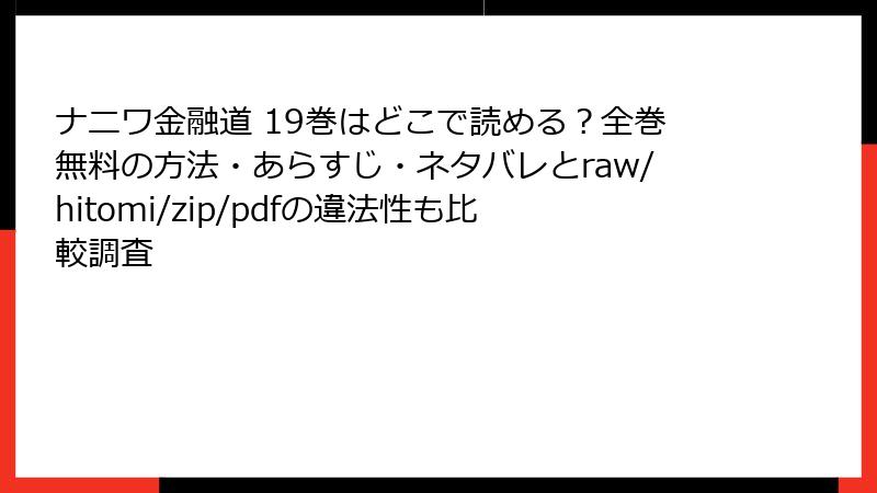 こんにちは、漫画ファン必見のブログへようこそ! 今日は、皆さんが気になっているトピック、海賊版サイト(raw、hitomi、zip、pdf、漫画バンクなど)で『ナニワ金融道』のような人気漫画を読むことのリスクについて、徹底的に掘り下げます。無料で最新巻をサクッと読めると魅力的ですが、その裏側には想像以上の危険が潜んでいます。2025年現在、ABJ(認定管理団体)の調査で、海賊版サイトの被害額が年間約8兆5千億円に上るという衝撃のデータも出ています。法的・セキュリティ・倫理的な観点から、詳しく解説していきます。ネタバレなしで読み進めつつ、自分の行動を見直すきっかけにしてくださいね!