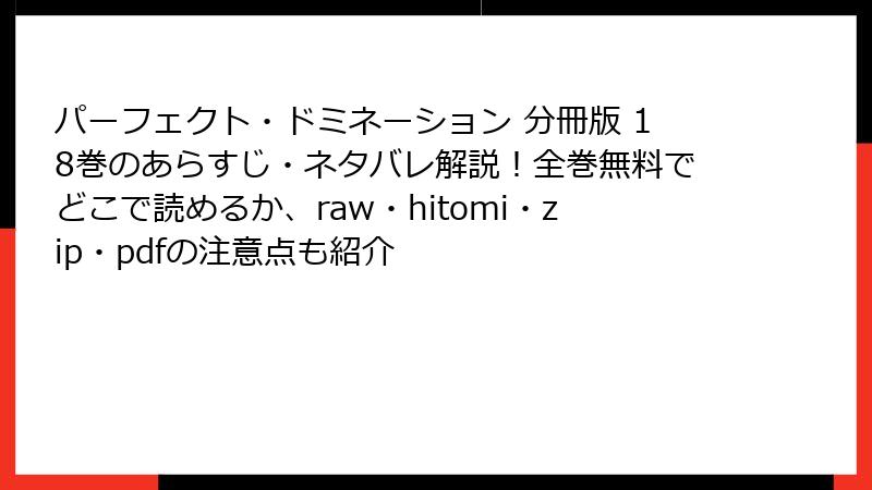 raw/hitomi/zip/pdf/漫画バンクで読む『パーフェクト・ドミネーション 18巻』は、一見無料でも、実際は数万円のリスクを背負う行為。欠落ページで感動は半減し、作者の未来は縮小する。たった150円で、千草の涙も、留司の「愛してる」も、横山先生の情熱も、すべてが守られる。