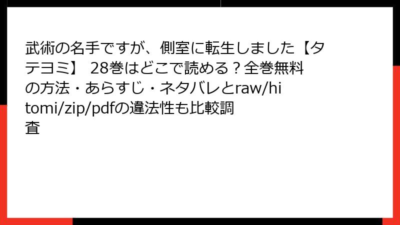 「武術の名手ですが、側室に転生しました【タテヨミ】」のような人気漫画を、raw、hitomi、zip、pdf、漫画バンクなどの海賊版サイトで無料で読みたい衝動はわかります。最新28巻を待たずに一気読みできる手軽さが魅力ですが、そこに潜むリスクは計り知れません。ウイルス感染から法的罰則まで、甘い誘惑の裏側であなたのデバイスや人生が脅かされる可能性大。今回は、具体的な危険性を徹底解説します。