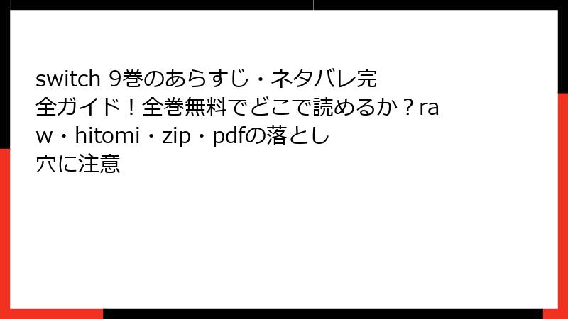 switch 9巻のあらすじ・ネタバレ完全ガイド!全巻無料でどこで読めるか?raw・hitomi・zip・pdfの落とし穴に注意