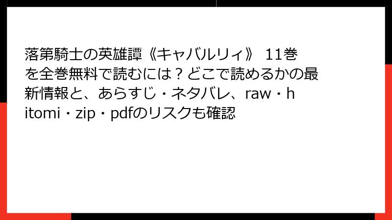 「11巻の続きが待ちきれない!」「無料で一気読みしたい!」――そんな衝動に駆られて、raw、hitomi、zip、pdf、漫画バンクなどの海賊版サイトに手を出す前に、絶対に知っておくべきリスクがあります。今回は、『落第騎士の英雄譚《キャバルリィ》』を例に、法的・セキュリティ・倫理的な観点から、海賊版利用の“本当の代償”をガッツリ掘り下げます。結論から言うと、「無料」どころか「超高額なツケ」が回ってくる可能性大。後悔する前に、しっかり読んでください!