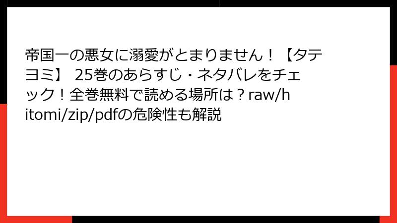 『帝国一の悪女に溺愛がとまりません!【タテヨミ】』25巻を**raw/hitomi/zip/pdf/漫画バンク**で読むリスクは、**法的処罰・マルウェア感染・金銭被害・倫理的裏切り**の4重苦。**「無料の誘惑」は、実は「高額な代償」**です。
