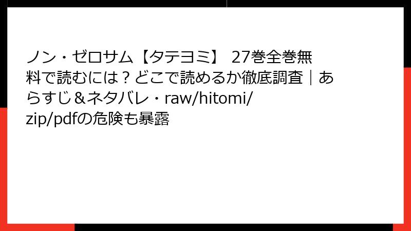 ノン・ゼロサム【タテヨミ】を海賊版サイトで読むリスク:raw/hitomi/zip/pdf/漫画バンクの闇を暴く
