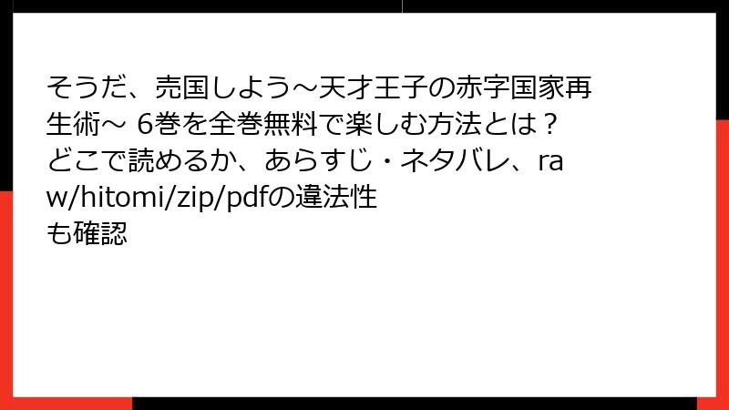 みなさん、こんにちは! ファンタジー世界の政治劇とユーモアが融合した傑作コミック、『そうだ、売国しよう~天才王子の赤字国家再生術~』の6巻が登場です。このシリーズは、弱小国家ナトラ王国を背負った天才王子ウェインの、売国(?)を夢見るドタバタ国家運営譚として大人気。5巻までの積み重ねが炸裂するこの巻では、ウェインの天才ぶりがさらにエスカレートし、読者を予想外の展開で翻弄します。今回は、6巻のあらすじを詳しく掘り下げてお届け。ネタバレを最小限に抑えつつ、読み応え満点でお伝えします! さっそく、巻の全体像から始めましょう。