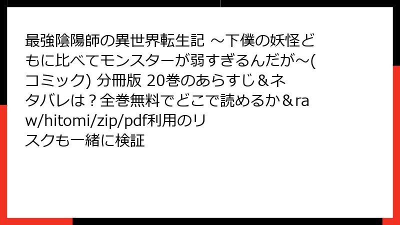 - 『最強陰陽師の異世界転生記』分冊版20巻:レビュー・口コミ・評判を徹底解説