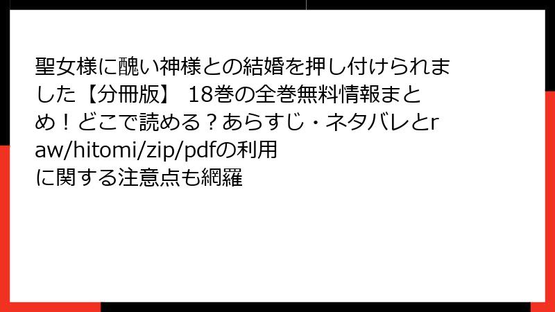 聖女様に醜い神様との結婚を押し付けられました【分冊版】 18巻の魅力に迫る! 詳細あらすじと読みどころ満載レビュー