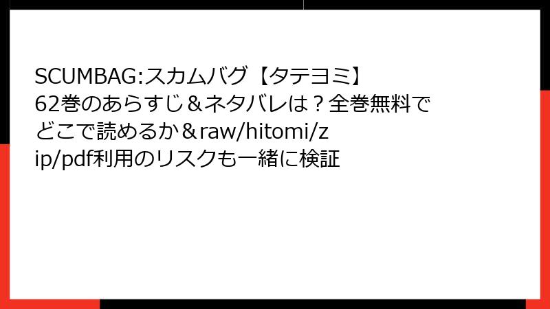 【警告】SCUMBAG:スカムバグをraw/hitomi/zip/pdf/漫画バンクで読むと…? 海賊版の“本当の代償”を完全暴露