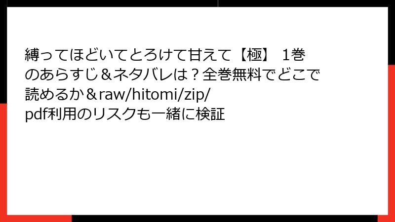 3. 【警告】「縛ってほどいてとろけて甘えて【極】」をraw/hitomi/zip/pdf/漫画バンクで読むと…取り返しのつかない5大リスク
