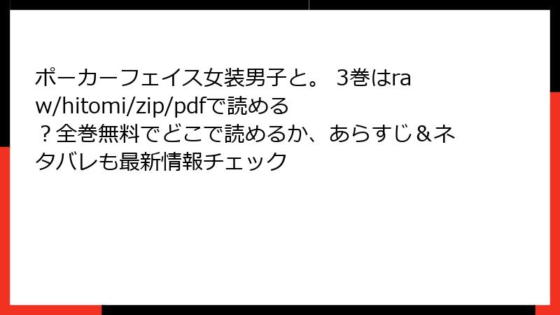 raw/hitomi/zip/pdf/漫画バンクなどの海賊版サイトは、法的罰金、マルウェア感染、業界崩壊の三重苦を招きます。短期的な「無料」の誘惑に負けず、クリエイターを支える選択を。『ポーカーフェイス女装男子と。』3巻の感動を、クリーンに味わいましょう! 皆さんの体験談や対策アイデア、コメントでシェアしてください。安全第一のマンガライフを♪