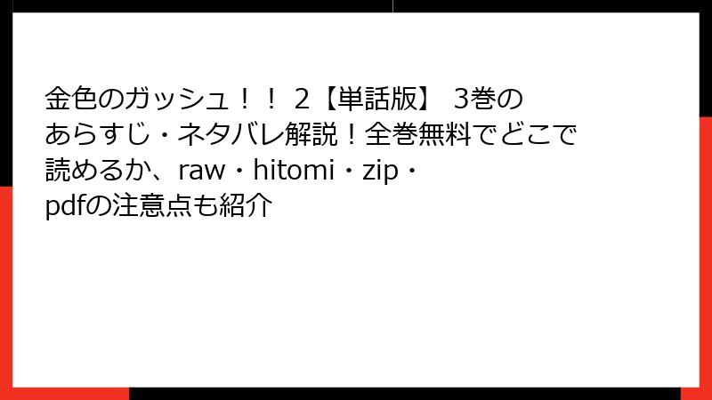 前作の感動を継承しつつ、新たな敵との戦いに突入した『金色のガッシュ!! 2』。単話版3巻(2023年12月15日配信)は、物語の歯車が一気に回り始める超重要巻! ここでは、ページごとのネタバレを徹底的に掘り下げ、キャラクターの行動、伏線、戦闘の詳細まで、ファン必見の深掘り情報を完全公開。まだ未読の方は、ここから先は重大なネタバレ注意です!
