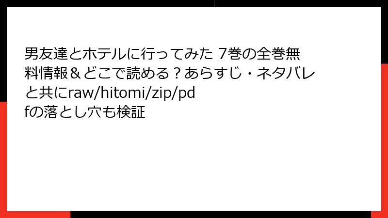 こんにちは、漫画ファン必見の安全読書ガイドブロガーです! 大好きな『男友達とホテルに行ってみた』のような心揺さぶる作品を、無料でサクッと読みたい衝動、わかりますよね。でも、raw、hitomi、zip、pdf、漫画バンクなどの海賊版サイトに手を出していませんか? 2025年現在、これらのサイトは一見の便利さの裏に、法的・セキュリティ・経済的な爆弾が満載。利用者の被害報告が急増中で、軽い気持ちでアクセスすると、後悔の連続です。このブログでは、そんなリスクを多角的に深掘り。読み応え抜群の構成で、なぜ絶対に避けるべきかを解説します。結論から言うと、海賊版は「一瞬の快楽の代償に、長期的な損失」。正規ルートで作者を応援しつつ、安全に楽しむのが本当のファン道です。それでは、警鐘を鳴らしていきましょう!