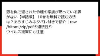 恩を仇で返された令嬢の家族が黙っている訳がない【単話版】 10巻:復讐の渦中、新たな陰謀の幕開け こんにちは、マンガ好きの皆さん! 今日は、七ツ河ほづみ先生による人気ファンタジー作品「恩を仇で返された令嬢の家族が黙っている訳がない【単話版】...