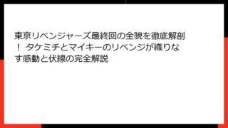 東京リベンジャーズ 東京リベンジャーズ完結の全貌!感動の最終回とキャラクターの未来を徹底解説
