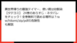 少年マンガ 異世界帰りの最強テイマー、使い魔は幼馴染【タテヨミ】 24巻のあらすじ・ネタバレをチェック!全巻無料で読める場所は?raw/hitomi/zip/pdfの危険性も解説 異世界帰りの最強テイマー、使い魔は幼馴染【タテヨミ】 24巻のあらすじを徹底解説! こんにちは、漫画好きの皆さん! 今日は、人気ダンジョンファンタジー漫画『異世界帰りの最強テイマー、使い魔は幼馴染【タテヨミ】』の24巻について詳しくお話しし... 2025.09.16 少年マンガ異世界帰りの最強テイマー、使い魔は幼馴染【タテヨミ】