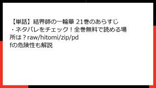 【単話】結界師の一輪華 【単話】結界師の一輪華 6巻のあらすじ・ネタバレをチェック!全巻無料で読める場所は?raw/hitomi/zip/pdfの危険性も解説