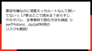 女性マンガ 悪役令嬢なのに溺愛えっちルートなんて聞いてないっ 17巻はどこで読める?あらすじやネタバレ、全巻無料で読む方法も検証(rawやhitomi、zip/pdf利用のリスクも解説)
