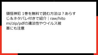 少年マンガ 領怪神犯 1巻を無料で読む方法は?あらすじ&ネタバレ付きで紹介|raw/hitomi/zip/pdfの違法性やウイルス被害にも注意 領怪神犯 1巻:神々の不可思議な脅威に挑む公務員たちの物語 こんにちは、漫画好きの皆さん! 今日は、KADOKAWAから刊行されたホラー・超常現象をテーマにした傑作コミック「領怪神犯」1巻のあらすじを詳しくご紹介します。この作品は、原作の小... 2025.09.17 少年マンガ領怪神犯