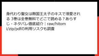 少女マンガ 身代わり聖女は敵国王太子のキスで溺愛される 3巻は全巻無料でどこで読める?あらすじ・ネタバレ徹底紹介|raw/hitomi/zip/pdfの利用リスクも調査