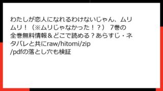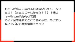 わたしが恋人になれるわけないじゃん、ムリムリ!(※ムリじゃなかった!?) わたしが恋人になれるわけないじゃん、ムリムリ!(※ムリじゃなかった!?) 6巻はraw/hitomi/zip/pdfで読める?全巻無料でどこで読めるか、あらすじ&ネタバレも最新情報チェック