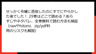せっかく令嬢に憑依したのにすでにやらかした後でした! 31巻 詳細あらすじレビュー こんにちは、マンガ大好きブロガーです! 今日は、異世界転生ロマンスの傑作『せっかく令嬢に憑依したのにすでにやらかした後でした!』の31巻について、たっぷりと...