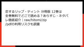 『恋するリップ・ティント 分冊版 12巻』の魅力に迫る! あらすじから読みどころまで徹底解説 こんにちは、漫画大好きブロガーのあかりです! 今日は、楠なな先生の人気少女漫画『恋するリップ・ティント』の分冊版12巻について、詳しく掘り下げてお...