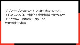 『デブとラブと過ちと!』31巻の魅力に迫る:ポジティブ変身の果てに訪れる新たな試練 こんにちは、漫画好きのブロガーです! 今日は、ままかり先生の人気ラブコメディ『デブとラブと過ちと!』の31巻について、詳しいあらすじを交えながら深掘りしてい...