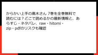 からかい上手の高木さん からかい上手の高木さん 7巻を全巻無料で読むには?どこで読めるかの最新情報と、あらすじ・ネタバレ、raw・hitomi・zip・pdfのリスクも確認 からかい上手の高木さん 7巻:甘酸っぱいからかいが加速する中学生ラブコメの傑作 みなさん、こんにちは! ラブコメ好きのブログ主です。今日は、山本崇一朗先生の大人気漫画『からかい上手の高木さん』の7巻について、詳しくあらすじを掘り下げてお届け... 2025.09.19 からかい上手の高木さん少年マンガ