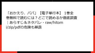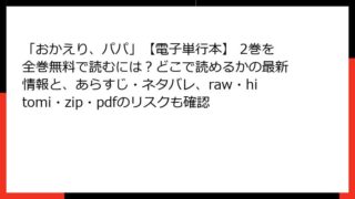 「おかえり、パパ」【電子単行本】 「おかえり、パパ」【電子単行本】 2巻を全巻無料で読むには?どこで読めるかの最新情報と、あらすじ・ネタバレ、raw・hitomi・zip・pdfのリスクも確認