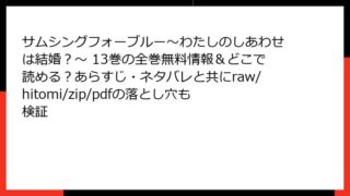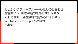 サムシングフォーブルー~わたしのしあわせは結婚?~ サムシングフォーブルー~わたしのしあわせは結婚?~ 18巻の魅力をあらすじ&ネタバレで紹介!全巻無料で読めるサイトやraw・hitomi・zip・pdfの危険性も検証