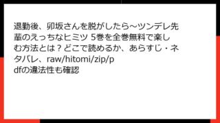 BLマンガ 退勤後、卯坂さんを脱がしたら~ツンデレ先輩のえっちなヒミツ 9巻のあらすじ&ネタバレは?全巻無料でどこで読めるか&raw/hitomi/zip/pdf利用のリスクも一緒に検証
