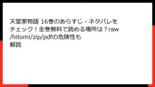 天堂家物語 天堂家物語 16巻のあらすじ・ネタバレをチェック!全巻無料で読める場所は?raw/hitomi/zip/pdfの危険性も解説