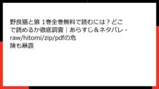 少女マンガ 野良猫と狼 1巻全巻無料で読むには?どこで読めるか徹底調査|あらすじ&ネタバレ・raw/hitomi/zip/pdfの危険も暴露 野良猫と狼 1巻:運命の出会いから始まる同居ラブストーリー こんにちは、漫画好きのブロガーです! 今日は、白泉社から発行されている人気少女漫画『野良猫と狼』の1巻について、詳しくあらすじを掘り下げてお話ししたいと思います。この作品は、ミユキ... 2025.09.21 少女マンガ野良猫と狼