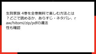 生贄家族 生贄家族 3巻を全巻無料で楽しむ方法とは?どこで読めるか、あらすじ・ネタバレ、raw/hitomi/zip/pdfの違法性も確認