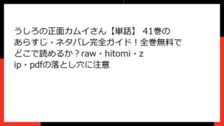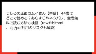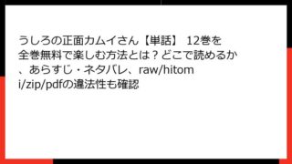 うしろの正面カムイさん【単話】 うしろの正面カムイさん【単話】 44巻はどこで読める?あらすじやネタバレ、全巻無料で読む方法も検証(rawやhitomi、zip/pdf利用のリスクも解説)