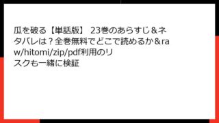 女性マンガ 瓜を破る【単話版】 77巻はraw/hitomi/zip/pdfで読める?全巻無料でどこで読めるか、あらすじ&ネタバレも最新情報チェック