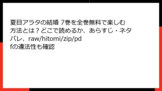 夏目アラタの結婚 夏目アラタの結婚 7巻を全巻無料で楽しむ方法とは?どこで読めるか、あらすじ・ネタバレ、raw/hitomi/zip/pdfの違法性も確認