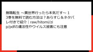 無職転生 ~異世界行ったら本気だす~ 無職転生 ~異世界行ったら本気だす~ 12巻は全巻無料でどこで読める?あらすじ・ネタバレ徹底紹介|raw/hitomi/zip/pdfの利用リスクも調査