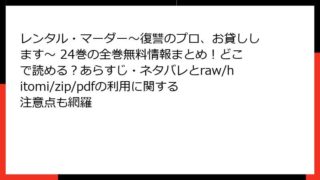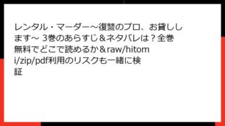 レンタル・マーダー~復讐のプロ、お貸しします~ レンタル・マーダー~復讐のプロ、お貸しします~ 3巻のあらすじ&ネタバレは?全巻無料でどこで読めるか&raw/hitomi/zip/pdf利用のリスクも一緒に検証