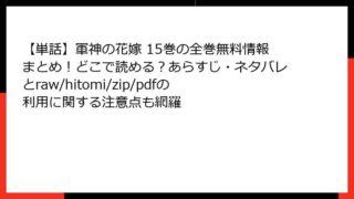 【単話】軍神の花嫁 【単話】軍神の花嫁 15巻の全巻無料情報まとめ!どこで読める?あらすじ・ネタバレとraw/hitomi/zip/pdfの利用に関する注意点も網羅