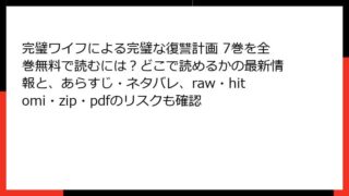 「完璧ワイフによる完璧な復讐計画」7巻のあらすじを徹底解説 「完璧ワイフによる完璧な復讐計画」7巻は、緻密に練られた復讐劇と心理戦がさらに加速する展開で、読者を引き込む人気コミックです。この巻では、主人公・美咲の復讐計画が新たな局面を迎え、...
