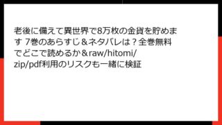 少年マンガ 老後に備えて異世界で8万枚の金貨を貯めます 7巻のあらすじ&ネタバレは?全巻無料でどこで読めるか&raw/hitomi/zip/pdf利用のリスクも一緒に検証